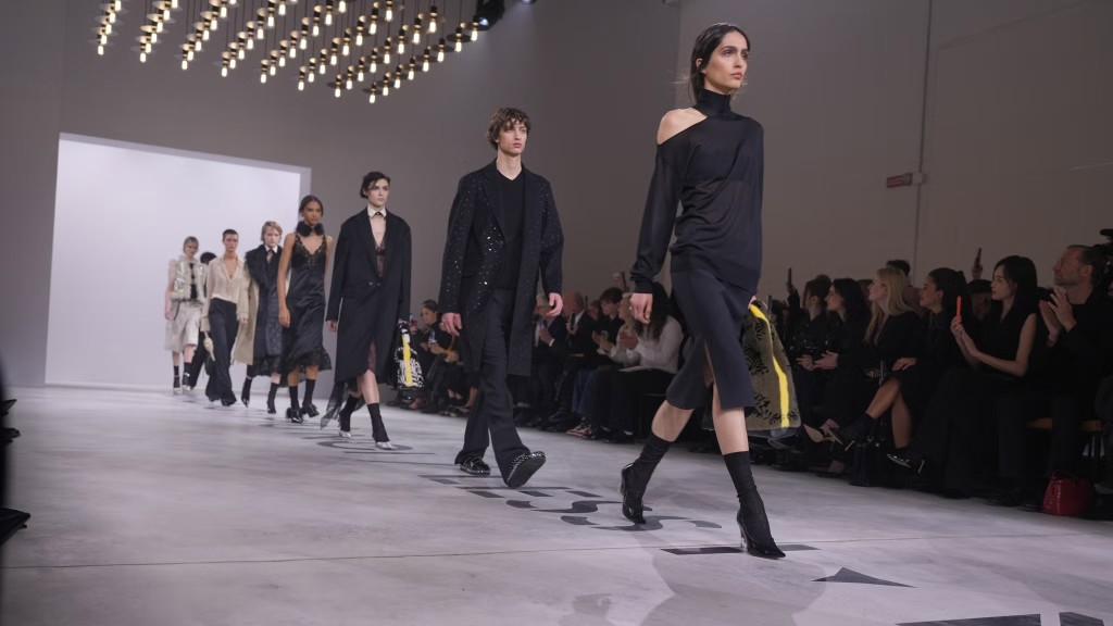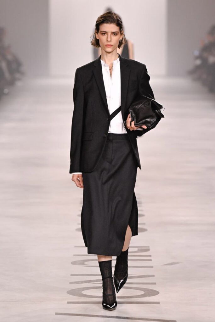 Az összhangra a kiegészítők teszik fel a pontot: zoknival viselt magassarkú szandálok, és természetesen rengeteg táska. A Baguette várhatóan ismét reflektorfénybe kerül – de már nem nosztalgikus visszanézésként, hanem egy új korszak újraértelmezett kulcsdarabjaként.