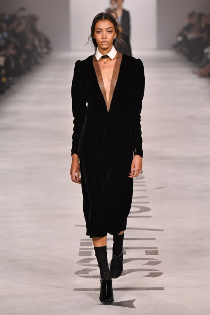 A Fendinél bemutatott első kollekciója egyértelmű állásfoglalás. Egyszerre nagyon Chiuri, és nagyon Fendi. A hangsúly a funkcionalitáson és az érzékiségen van: a ruhák hordhatók, testközeliek, ugyanakkor finom, sokszor áttételes erotikát hordoznak.