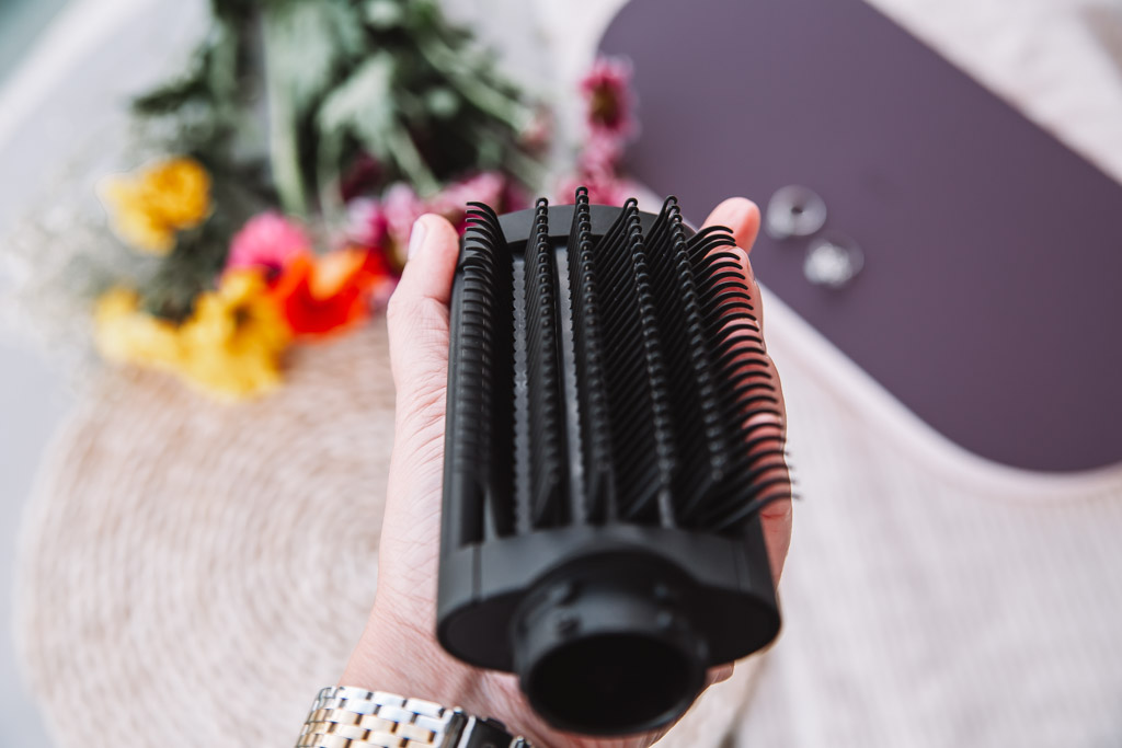 A Dyson hajformázók egyik legizgalmasabb eleme mindig is a Coanda‑effektus volt: a nagy sebességű levegő “rákapaszkodik” a formázófej felületére, és magával húzza a hajszálakat. A Co‑anda2x‑nél ez a hatás a nagyobb légnyomás miatt látványosan erősebb. A gyakorlatban azt érzem, hogy a hengereket elég megfelelő irányba tartani, a haj szinte magától ráfekszik; nem kell feszesen körbetekerni, mint egy klasszikus hajsütőn, így a formázás kevésbé megterhelő a haj szerkezetére nézve.
